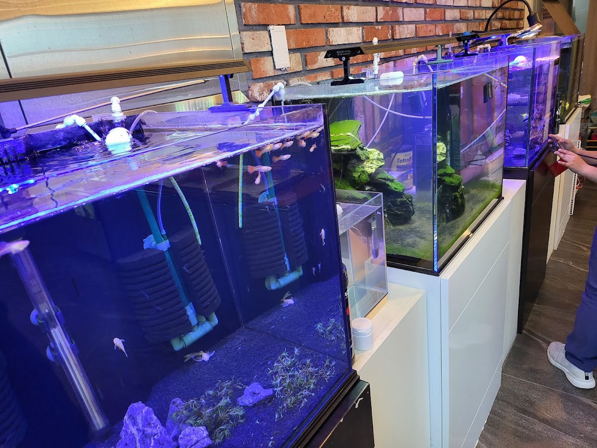 What sets Thetis apart is its captivating interior, inspired by the mother of Achilles from Greek mythology. As you step inside, you're greeted by an enchanting array of aquariums filled with vibrant fish, allowing you to unwind and "get lost" in their fluid movements. This mesmerizing backdrop is complemented by an abundance of potted plants that bring a refreshing burst of nature indoors.